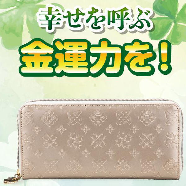 そんな金色のパワーをまとった《金運幸せ財布》は、四つの吉祥モチーフを刻印し、金運神社でのご祈祷済み。紙幣を折らずにしまえる長財布タイプで、まさに“幸せを呼ぶ金運財布”として注目されています。