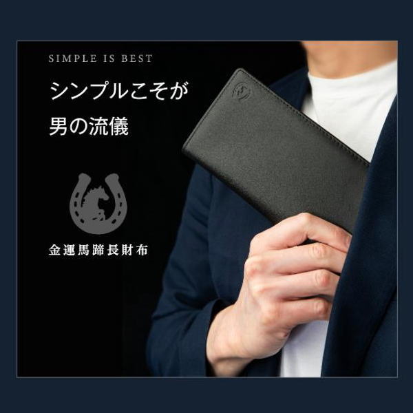 《金運馬蹄長財布》は、無駄を省いたシンプル設計に馬蹄モチーフをさりげなく添えたデザイン。持つ人の知性と落ち着きを引き立て、金運をしっかりキープしてくれます。