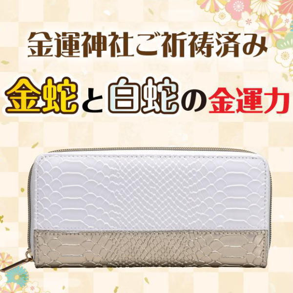 《財運金蛇白蛇財布》は、巳年にふさわしい金蛇と白蛇の吉兆をあしらい、金運神社にてご祈祷済み。古くから日本で伝わる“干支信仰”のエネルギーも取り入れた、浄化と運気上昇の財布です。